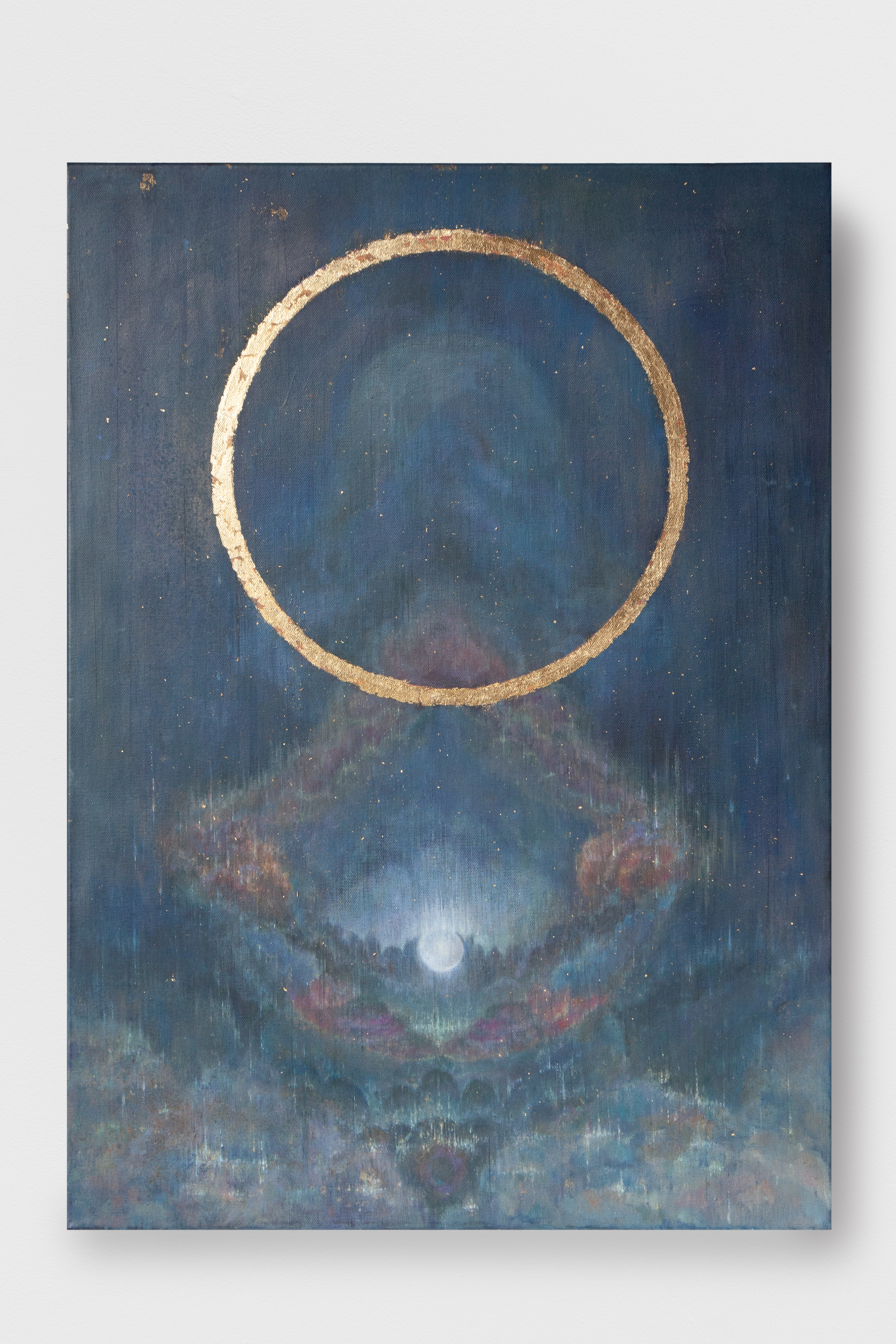 Xuan paper on alu-dibond,29 x 21 cm (framed) 2009.Oil on canvas, sandalwood ash, gold leaf,50x70 cm, 2024