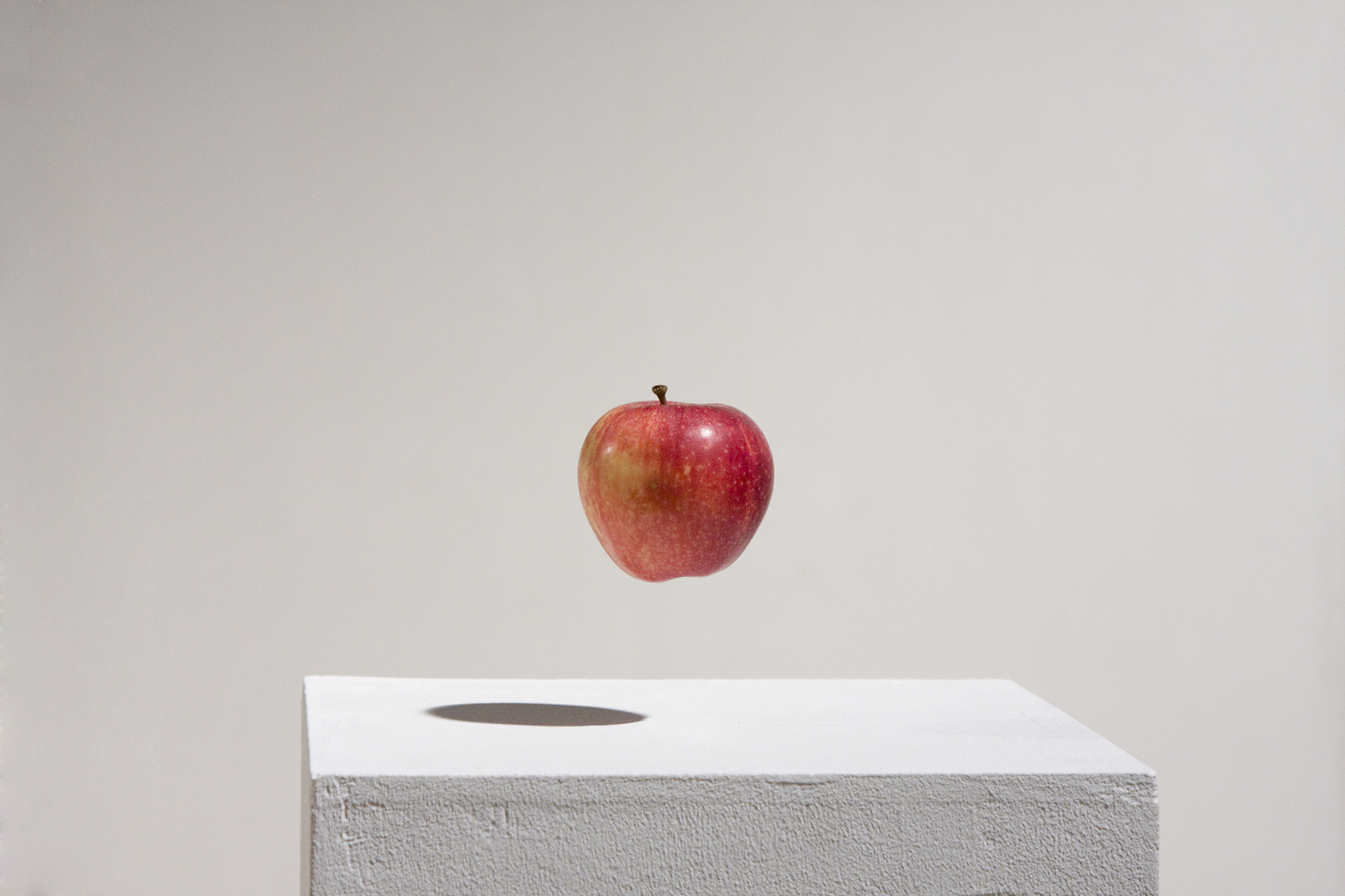 An apple, detached from Newton's law of gravity, floats in mid-air. It is both unfamiliar and familiar, embodying a spatial relationship between objects that may not conform to people's usual way of understanding. The work attempts to challenge the audience's understanding of object gravity and space, leading to a reconsideration and examination of their own cognitive approach.